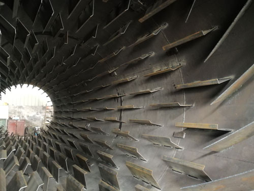 要想將干粉砂漿烘干到合理的水分,烘干機(jī)的安裝工藝和設(shè)計(jì)工藝非常重要,由于粉狀物料流動(dòng)性不如固體物料,干粉砂漿烘干機(jī)的安裝需要設(shè)計(jì)一個(gè)合理的傾斜角度,能讓物料在被烘干的過程中勻速流動(dòng),這個(gè)流速需要達(dá)到剛好物料到出口處時(shí)被烘干,所以傾斜角度的設(shè)計(jì)很重要。然后是設(shè)計(jì)工藝,粉狀物料會由于重力的作用沉積,要想充分將其烘干,必須進(jìn)行打散揚(yáng)起,讓高溫氣流從物料種穿過,這就對筒體內(nèi)的設(shè)計(jì)工藝提出要求,除了安裝揚(yáng)料板,還要對排布位置,間距、密度等參數(shù)有一個(gè)合理的設(shè)計(jì)。